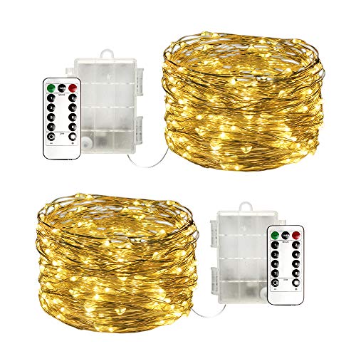 MIYOLE イルミネーションライト ledストリングライト 10メートル 100 LED電球 フェアリーライト ガーデンライト 電池式 リモコン付き 防水 8点灯モード クリスマス 飾りライト 2個セット( ウォームホワイト)