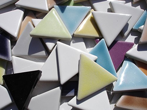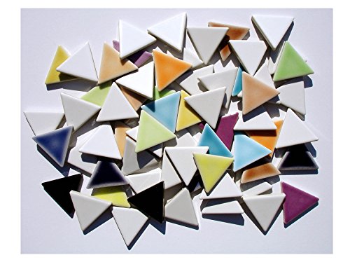 - カラフルな三角形のモザイクタイルがランダムに入った楽しいセット。