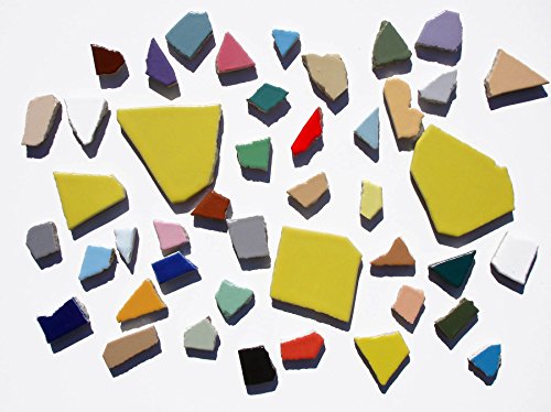 - 大小のカラフルな変形モザイクタイルがランダムに入った楽しいセット。砕いた形が面白い。