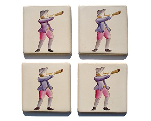 レトロ デザインタイル 笛を吹く青年 4枚セット 限定品