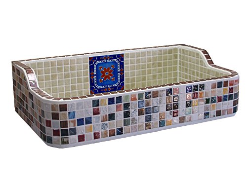 - 23角モザイクタイルを手作業で貼り上げています。背面はタイルが貼ってありません。前面・側面のモザイクタイルの色はランダムミックス貼りの為、写真の色・配列とは多少異なります。