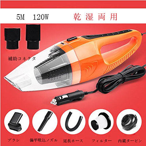 車用掃除機 低騒音 12V乾湿両用自動車 ハンディ掃除機 超強吸引 5M電源コード カークリーナー ハンディクリーナー【一年間の安心保証】 (オレンジ色)