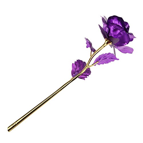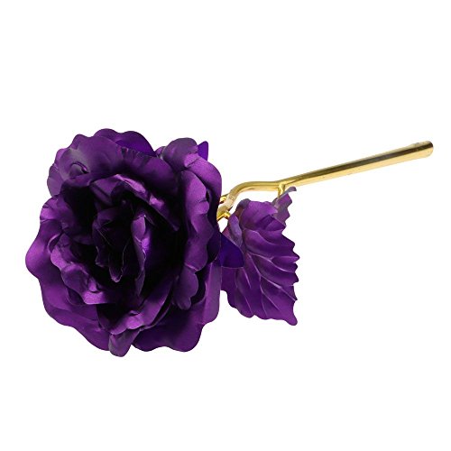 Elagentハンドメイドゴールド箔ローズDipped Long Stem Romantic Lovers 'ギフト – パープル