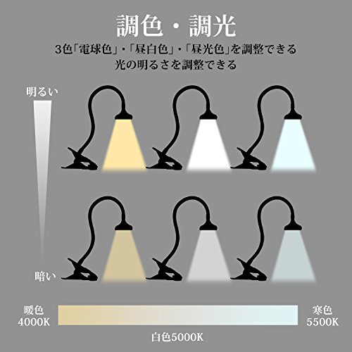 クリップライト MOCREO(モクリオ) LEDデスクライト 電気スタンド 3モード調色 卓上用勉強・読書灯・ブックライト ホワイト