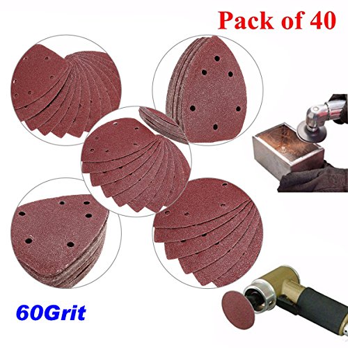 MOHOO ミニデルタサンダー用サンドペーパー マウスサンディングシート黒とデッカー マウスパームサンダーサンドペーパー 140mm×100mm 5開口 #60/#80/#120/#240 40枚入 #60