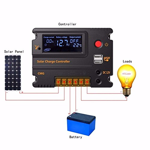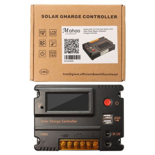 MOHOO 20A 12V/24Vソーラー充電コントローラレギュレータオートスイッチのLCDインテリジェントパネルバッテリー過負荷保護温度補償