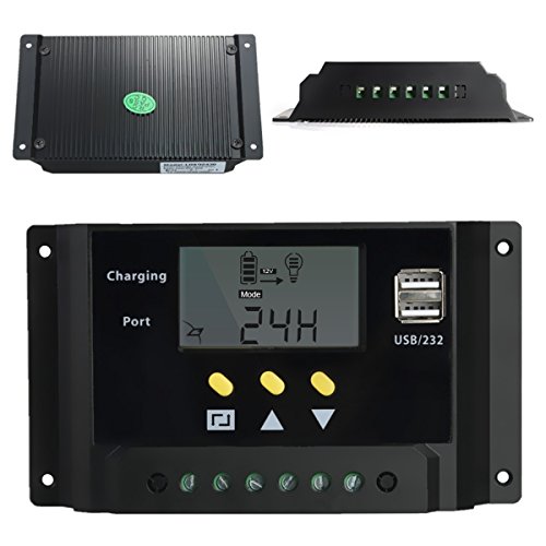 ソーラーコントローラ MOHOO® 30A 12V/24V 360W/720W LCD PWM ソーラーチャージコントローラー 充電コントローラー 電流ディスプレイ 液晶 デュアル USB付き ソーラーパネル バッテリレギュレータ 自動調整スイッチ