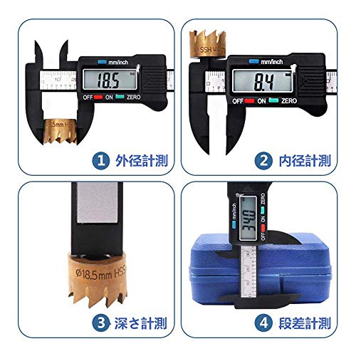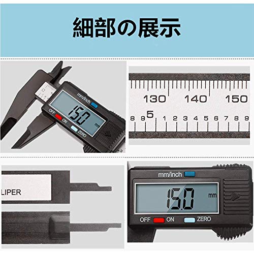 デジタルノギス 外径/内径/段差/深さ測定 LCDディスプレイ 高精度 0.1 ~ 150mm ゼロリセット ホールド機能 ノギス コンパクト DIY 大工 電池付
