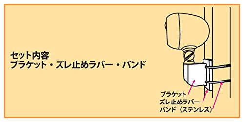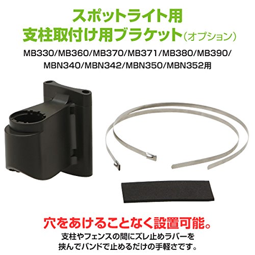 ◆穴をあける事なく設置可能◆支柱やフェンスの間にズレ防止ラバーを挟んでバンドで止めるだめの手軽さ / ■ 仕 様 ■セット内容:ブラケット、ズレ防止ラバー、バンド(ステンレス) 取付可能型番:MBN340、MBN342、MBN350、MBN352、MB360、MB390 /