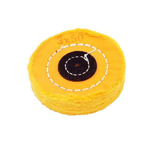 新品コットン布バフホイール2個セットです。 仕上げ用で、研磨面はフェルト以上に柔らかくなっております。 アルミやステンレスなど金属の最終研磨にお使い下さい。 小型な両頭グラインダーにも使用可能です。 白色に比べ黄色の方がやや硬い感じですが、ほとんど変わりません(黄色は宝石やジュエリー向き、白色はステンレス、アルミ、アクリル製品向きとされています)。 最大18mm程度の穴拡大にまで耐えれるように、センター部はレザー生地で補強されています。レザー部のステッチは直径約20mmとなります。 ※コンパウンド等を使用してください。