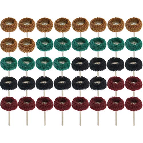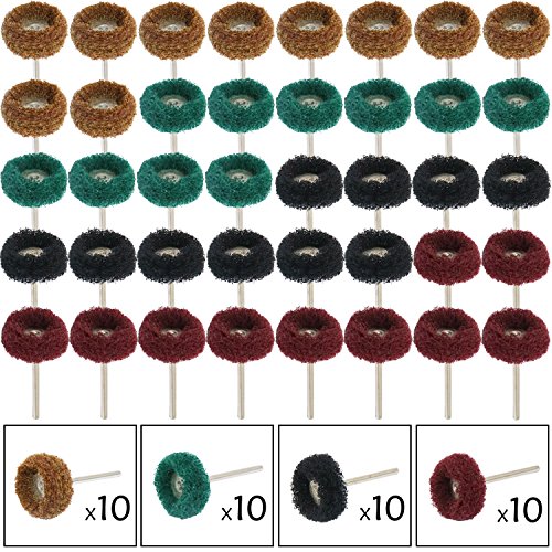 JINTONG 4色繊維バフ 【3mm軸】40個入り ホイール ナイロン 布ブラシホイール 混合色4種 セット 研磨 剤 電動 ドリル ルーター ビット (各10本40本セット)