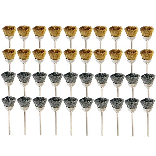 JINTONG 2種類真鍮ワイヤーブラシ& 鋼ブラシ ボウルカップ型 ワイヤーブラシ 研磨ブラシ 研削ブラシ 毛研磨ブラシ ドレメル 回転ツール アクセサリー 【2.35mm軸】40個入り