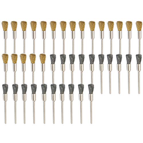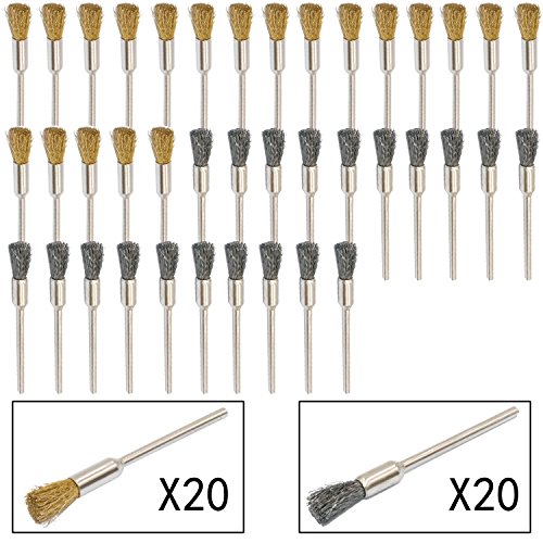 JINTONG 2種類真鍮ワイヤーブラシ& 鋼ブラシ 筆型 ワイヤーブラシ 研磨ブラシ 研削ブラシ 毛研磨ブラシ ドレメル 回転ツール アクセサリー 【2.35mm軸】40個入り
