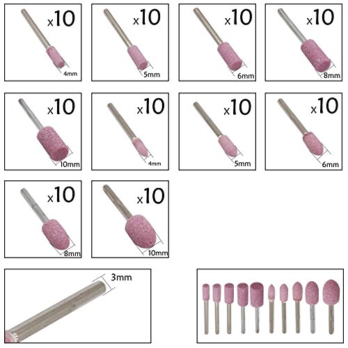 JINTONG 砥石 3mmシャンク コーン ヘッド セラミック 研磨 便利な 2種類 5サイズ 軸 付 セラミック 砥石 バフ 100本 セット