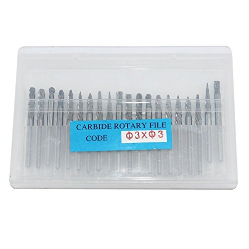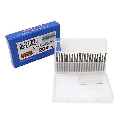JINTONG 超硬バー タングステンバー リューター ビット 20本セット(3mm軸 刃幅3mm)ダイヤモンドカット シャンク金物 切削 研磨