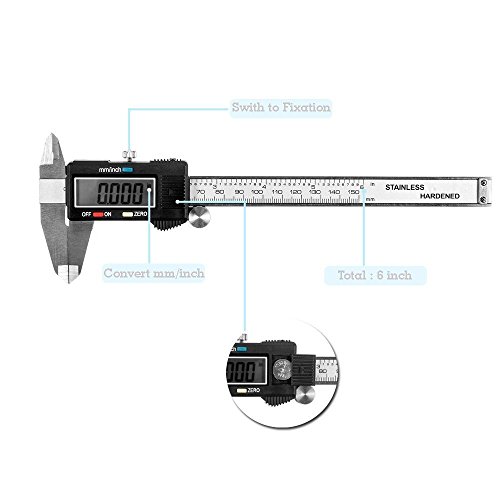 【製品仕様】 ■測定範囲: 0-150mm ■最小読取:0. 01mm ■電源:ボタン電池(付属しております) ■使用温度範囲:0~40℃ ■用途:外側・内側・段差・深さの測定 ■付属品:専用ケース、電池LR44×2(本体搭載×1、予備用×1)、電池交換用道具