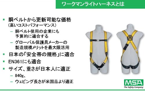 MSA JAPAN ワークマンライトハーネス Mサイズ 袋入 10128865 [安全帯 落下防止 電気工事 高所での安全作業]