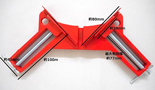 - 資材の直角固定や接着作業、45度切断などに必須のコーナークランプです。最大有効幅:約77mm(あくまで目安です。若干の誤差はございます。)