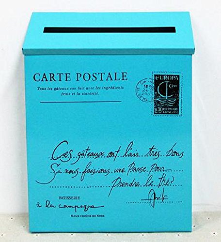 MSP メール ボックス 郵便 ポスト 新聞 受け 投書箱 ポストカード風 アンティーク 調 (青)