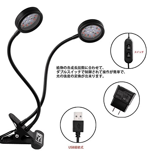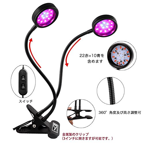 - デザイン:ダブルラウンド、便利性及び柔軟性があり、360°調整可能、クリップで机やテーブルに挟んで、光合成に有効な光を集中させ、植物の各生長段階に合わせて、植物の生長を強化出来ます。
