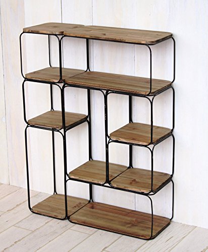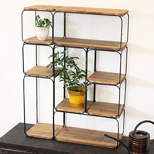 ディスプレイラック ウッド アイアンキューブラック 飾り棚 多目的ラック