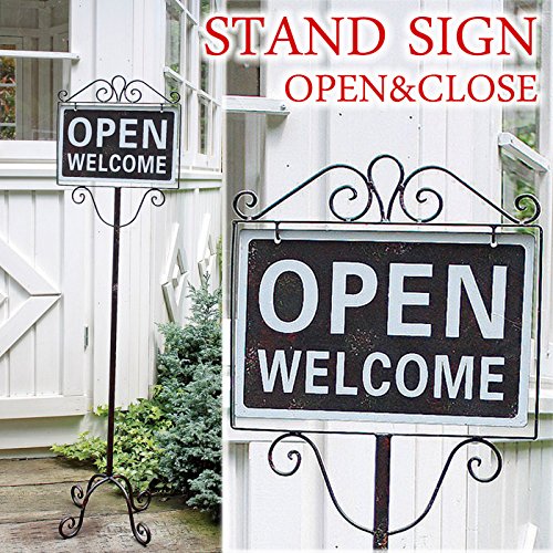 オープン&クローズ OPEN&CLOSE STAND アイアン サインスタンド スタンド看板 両面パネル看板 案内板 サインボード 店舗 ディスプレイ 店舗什器 おしゃれ 営業案内 アンティーク調 業務用 ショップ