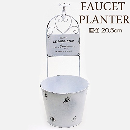 プランター 植木鉢 ガーデンプランター直径20.5cm アンティーク調ティンフラワーポット 大 アイアン 蛇口 鉢 オーナメント