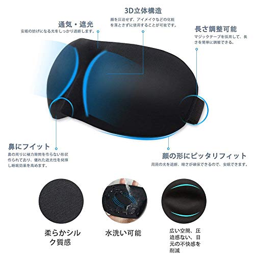 - 【立体3D型で圧迫感ゼロ】目と鼻の部分がドーム状の3D設計で、瞼とアイマスクとの間に空間を作り出し、目玉への圧迫感を感じさせません。まつげエクステをつけている女性にも大丈夫です。