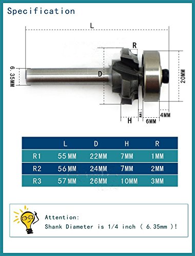 wood trimming bearing 1/4"*R2 4 teeth woodworking milling cutter edge trimmer 55mm Length 19mm(626RS) width