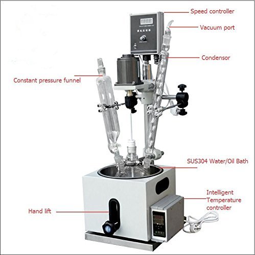 1L Lab Glass Chemical Reactor Chemistry Reaction Vessel with SUS304 Water Oil Bath Condensor Flask (220V)