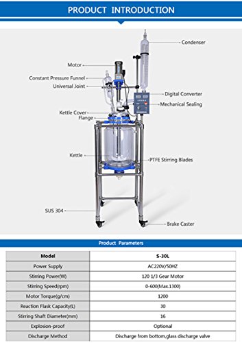 mxbaoheng 20l防爆モーターラボJacketed化学ガラスReactorガラス反応ケトル 220V HQ-1824
