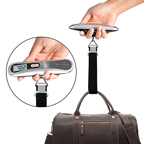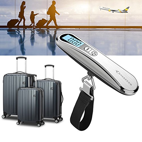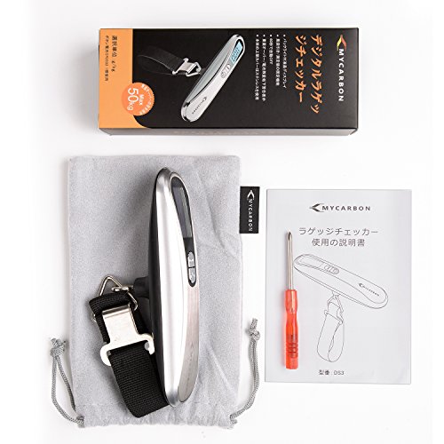 MYCARBON 荷物測り 旅行はかり【改良版】ラゲッジチェッカー 最大50kg デジタル はかり 携帯式デジタル スケール トラベルラゲッジ スケール スーツケース スケール ラゲッジスケール UNITボタンで単位切換 ステンレス仕上げ 旅行 ホームに最適の秤 軽量 風袋引き機能付 シルバー(日本語説明書)