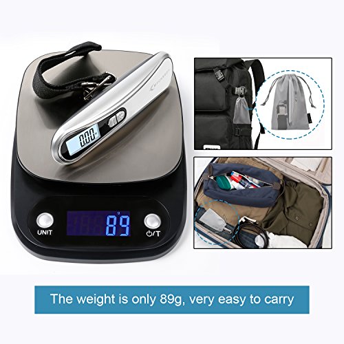 - 【スタイリッシュなデザイン・小型】スーツケースはかりは人体工学に基づいた高品質でスタイリッシュなデザインで、吊りはかりは人の手にぴったりフィットします。耐久性・耐摩耗性も高く、軽量89gで持ち運びも便利です。旅行や家庭で不可欠のアイテムです。荷物スケールは家族や親友にもオススメです。