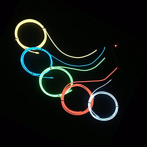 ELワイヤー セット5個 電池式 EL直径2.3mm 長さ5m (靑、緑、赤、白、ピンク) 電池BOXセットx5個 【EL ネオンワイヤー EL照明 ELファイバー 光る衣装】