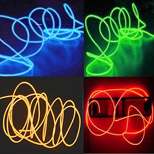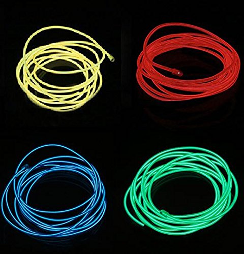ELワイヤー セット4個 電池式 EL直径2.3mm 長さ5m (靑、緑、赤、黄) 電池BOXセットx4個 【EL ネオンワイヤー EL照明 ELファイバー 光る衣装】