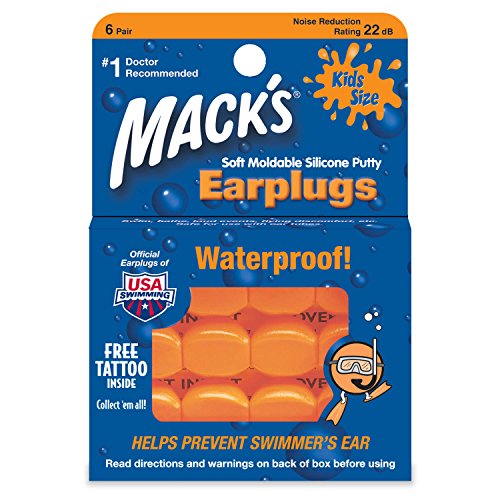 Mack's kids size moldable silicone earsplugs, the ultimate in earplug comfort, Mack's silicone putty moulds to the unique contours of any ear. Doctor recommended to: Seal out water Help prevent swimmer's ear and surfer's ear Provide protection after ear surgeries Help relieve flying discomfort Protect hearing from loud noises Provide non-toxic, hypoallergenic protection Provides a better, more comfortable fit and seal than custom ear plugs Mack's are larger and safer than other kid's size earplugs. Recommended for kid's 6 years old and under Bright colour is fun for kids and easy for parents to see Plastic carrying case included