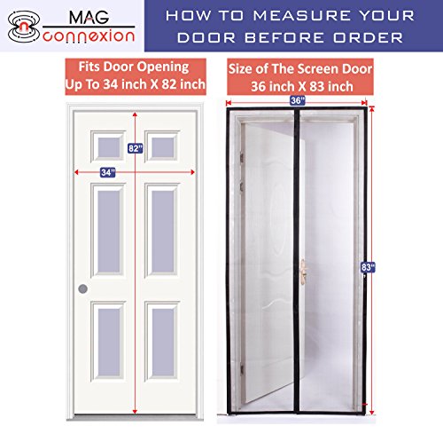 - 簡単にインストールでき、必要に応じ除去:ツールを使用することなく、数分でインストールしてください。フィットドアの開口部のは34 " x82」を参照してください。をフルに搭載されているフレームに画面をマジックテープや画鋲をしっかり場所に保管してください。囲まれている画びょうは付属しブラックに溶け込むきれいブラックベルクロ停止する可能性があります。詳細は、インストールの説明がパッケージに含まれますドア開口部のサイズを測定前に、サイズをご確認下さい。