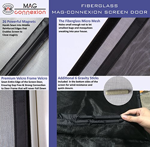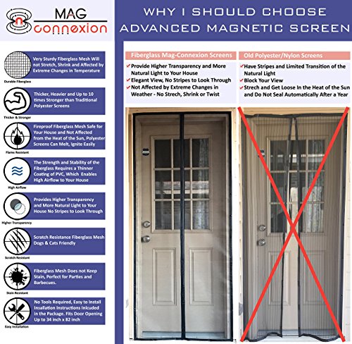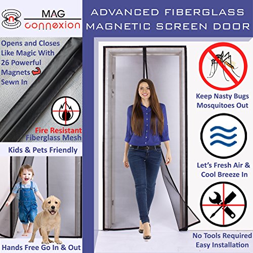 高度な磁気スクリーンドアby mag-connexion-耐火、汚れと傷防止ファイバーグラスRetractableメッシュ、フルフレームベルクロ、Keep Bitingバグアウト、ドアFits up to 34 " x 82インチ、2年保証