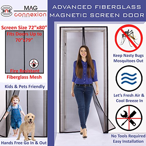 磁気スクリーンドアの高度な格納式ファイバーグラスメッシュナイロンません| 2017新しいデザインby mag-connexion |バグ& Mosquito Proof、キッズ&ペットフレンドリー|フィットドアUp To 34 x 82インチ 70 x 79 Inch 712396295112