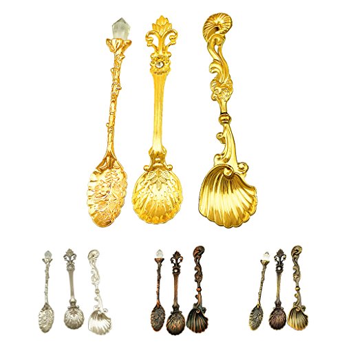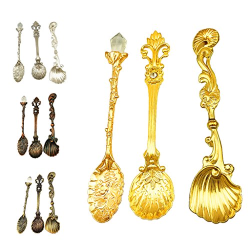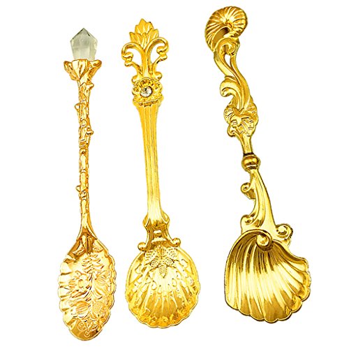 MagiDeal 3pcsヴィンテージコーヒースプーンティースプーンアイスクリームスプーンSundaeミルクスプーン as described ゴールド 21fe6cc881a790ef44fd6471fe0be55a
