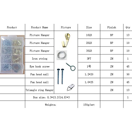仕様: – 13ピース10lb画像ハンガー – 10ピース20画像ハンガー – 10ピース値引画像ハンガー – 1ピース3 FT。アイロン文字列 – 45ピース1 #目フックねじ – 90ピース1.2 X 20 mmなべネイル – 45ピース1.6 X 25 mmなべネイル – 13ピース三角形リングハンガー – ボックスのサイズ& # xff1 a ; 13.2 X 8.3 X 3 cm / 5.20 X 3.27 X 1.18inch
