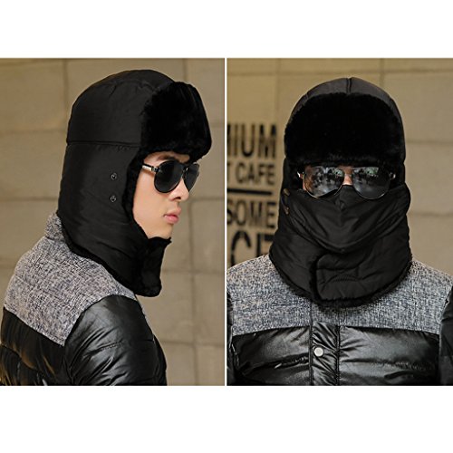 MagiDealブラックユニセックス冬Trapper Trooper Earflap暖かいスキーハットwithマスク