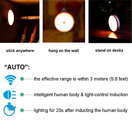 MagiDeal USB電源供給モーションセンサー常夜灯、ポータブルキャンプライトwith 3インテリジェントなモード自動/オン/オフ、stick-anywhereのLEDライト壁ランプ廊下階段クローゼットバスルームベッドルームキッチン