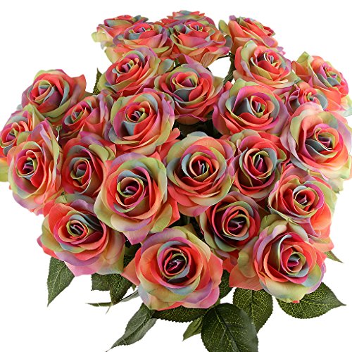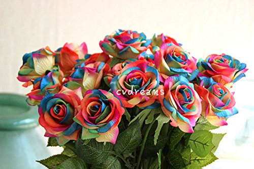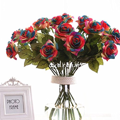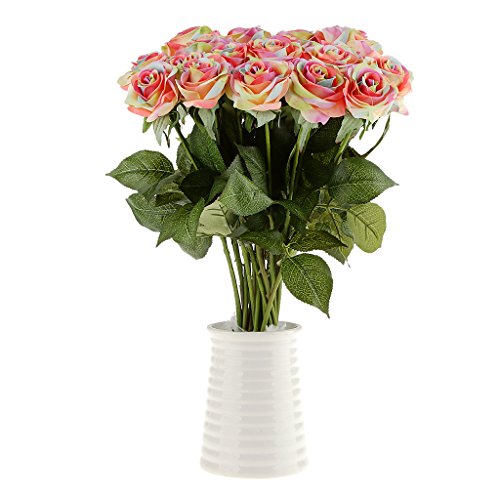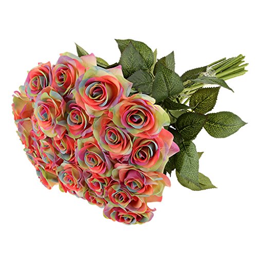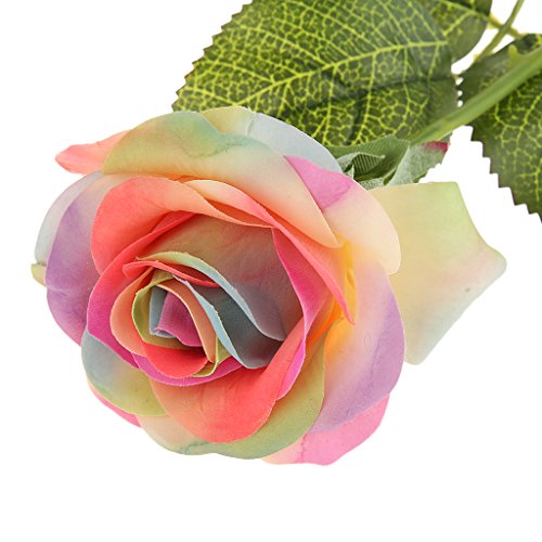 MagiDeal人工レインボーパターンローズホームブライダルパーティーオフィス装飾マルチカラー