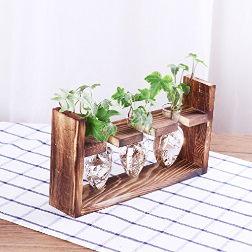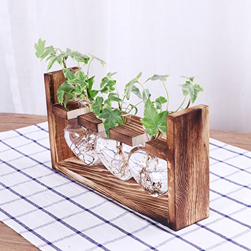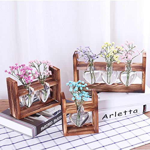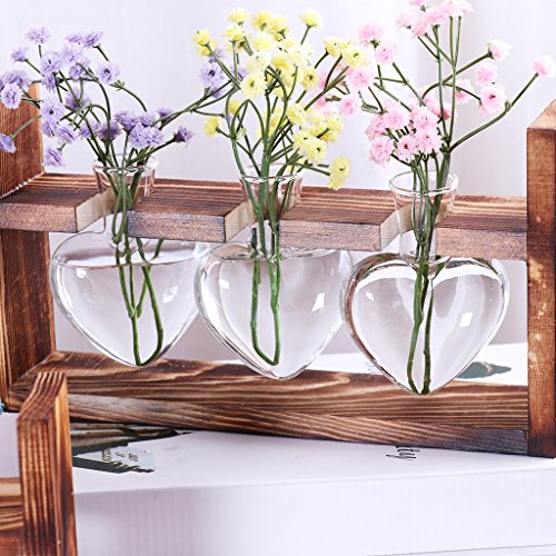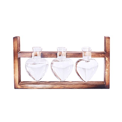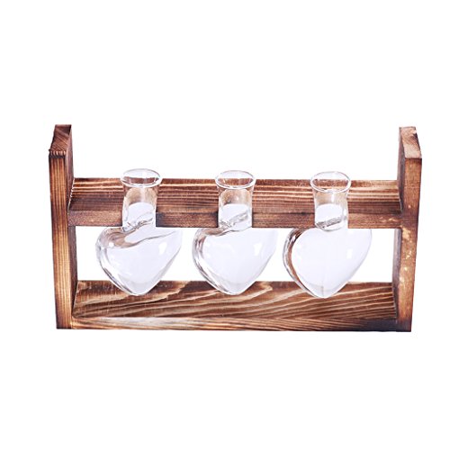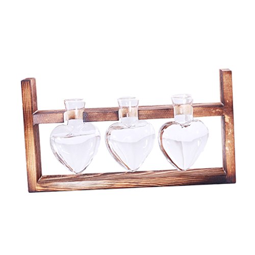 MagiDealヴィンテージスタイルラブハート型透明ガラステーブルトップ植物盆栽フラワー花瓶ウェディングパーティー装飾テラリウムwith木製トレイ 3 Beakers 0515000030197USA