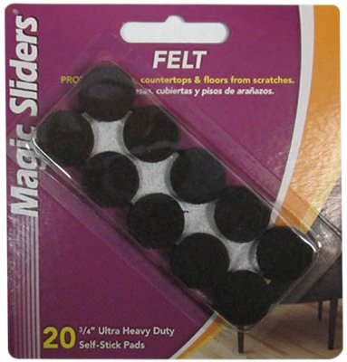 Magicスライダ、20パック、3 / 4 "、ブラウン、超頑丈、自己スティックフェルトパッド、保護床tabletops &の引き出し、傷から守ります。