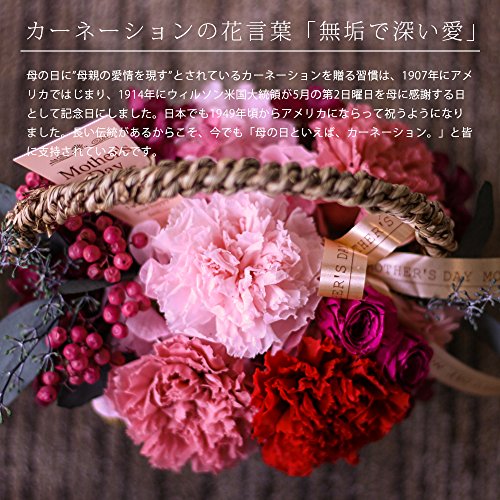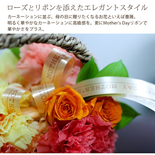 - 母の日にぴったり♪カーネーションとバラのプリザーブドフラワーをリボンで飾った華やかなバスケットアレンジです。