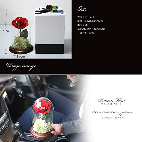 映画の美女と野獣の様に幻想的で美しい薔薇のドームアレンジ「プリンセスフルール」最高品質のプリザーブドフラワー、アモローサを薔薇・茎・葉に使用。誕生日・記念日に贈りたいお花です。 【サイズ】 ガラスドーム:直径15cm×高さ21cm ボックス:高さ約23cm×幅約16cm×奥行約16cm 【カラー】ブライトレッド【素材】・プリザーブド:ローズ、アジサイ、茎、葉 ・ドーム:ガラス ・付属品:化粧箱、リボン、造花 ※注意事項 ・ダイヤモンドローズ 茎などの素材は自然素材の物を1輪1輪手作りの為、大きさの違いや、葉の付き方、曲がり方、画像と色が多少異なる場合がございます。ご理解の上ご注文ください。 ・こちらの商品はクリアーケース対応をしていません。
