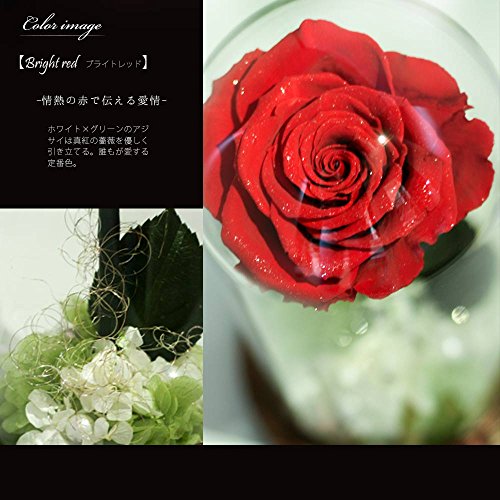 - 【カラー】ブライトレッド【素材】・プリザーブド:ローズ、アジサイ、茎、葉 ・ドーム:ガラス ・付属品:化粧箱、リボン、造花