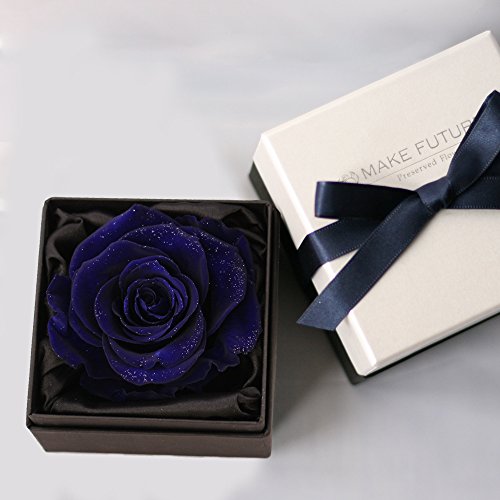 Makefuture プリザーブドフラワー ダイヤモンドローズ アモローサ使用 フラワーボックス (エクセレントブルー)